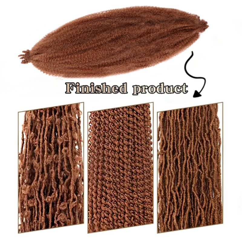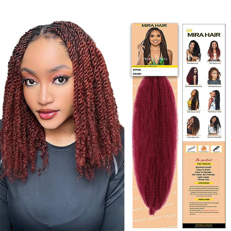 Mira Afro Kinky Curly Bulk Hair has been pre-separated and pre-fluffed to make it even easier to get the curly, but not-too-springy, beautiful spring twist look without all the tangling. So take a break from box braids, kinky twists, and everything in-between and switch it up with Afro Kinky Curly Bulk Hair.