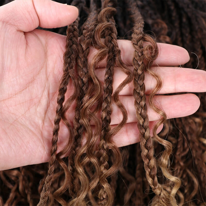 Mira Boho Box Braids crochet hair are meticulously crafted using synthetic fibre.Bohemian hair style They flawlessly mimic natural hair, giving you an authentic look that’s highly sought after for various braids hairstyles, and styling choices.