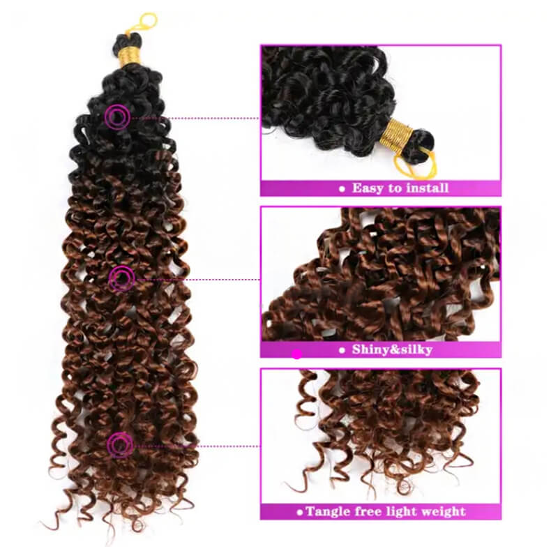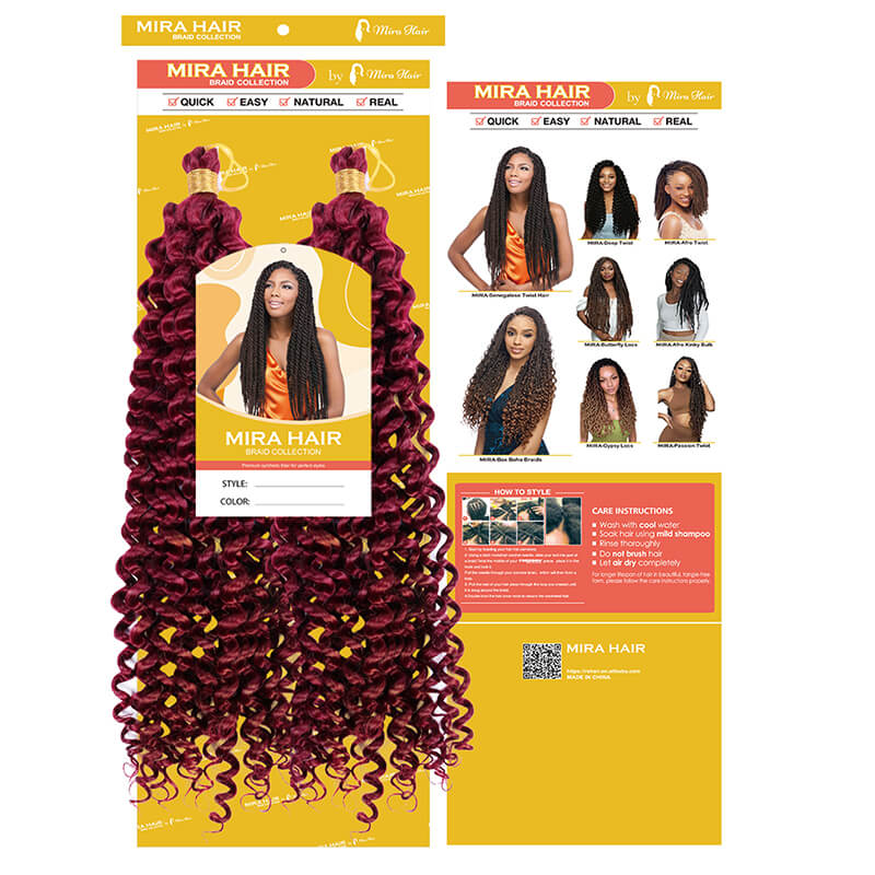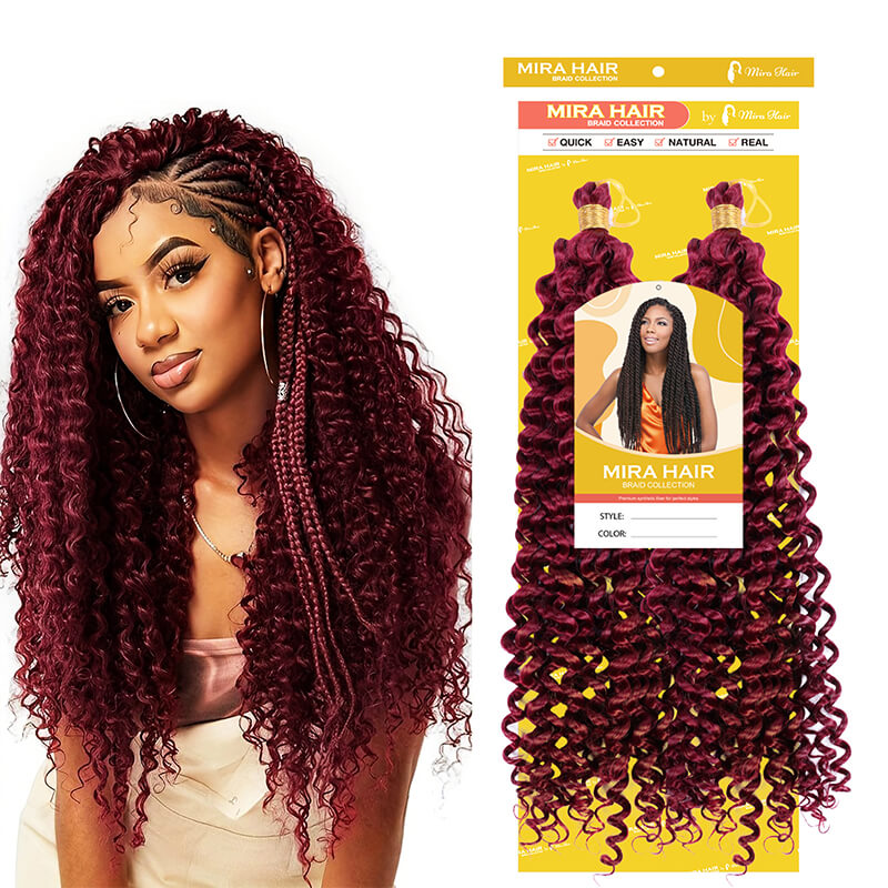Mira Water wave crochet braiding hair is made of premium heat-resistant synthetic hair mixed braiding hair, smooth and soft, the feeling and texture is similar with human hair braiding hair, but price is more cheaper. It will create a more natural and charming hair style for you.